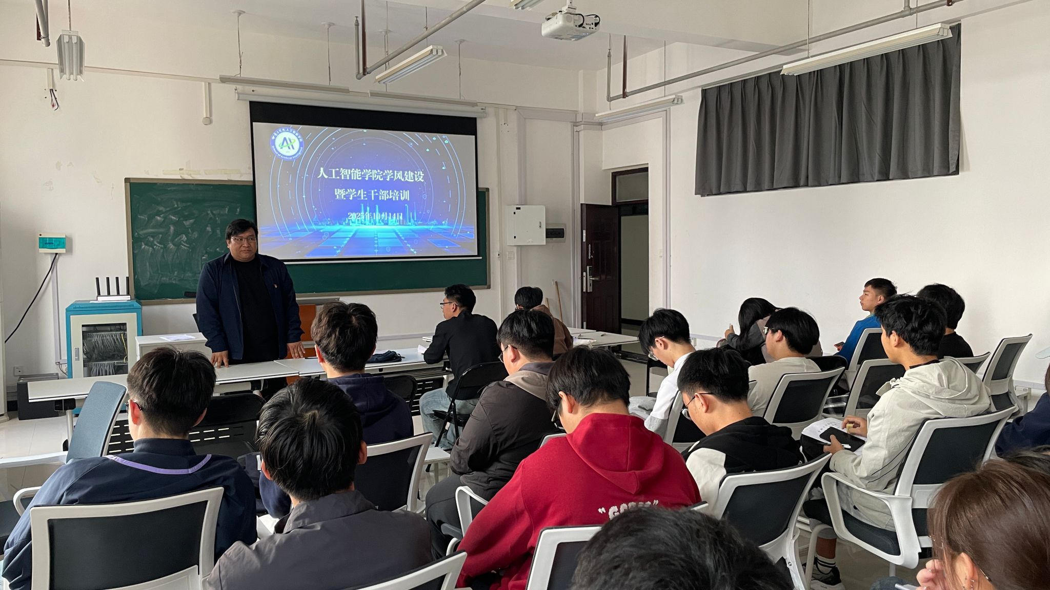 ;   张志鹏作开班动员,肯定了学生干部的履职表现,强调其在学院工作推进和学生自我管理中的重要作用,鼓励大家珍惜培训机会,明确职责使命,在服务同学中锤炼本领、实现成长。姜茜围绕“角色定位与沟通技巧”展开分享,结合工作案例剖析学生干部双重身份,强调既要落实学院工作要求,也要倾听同学诉求,同时传授高效沟通方法,助力化解工作矛盾。王亚亚聚焦“工作实务与责任担当”,从班级管理、活动策划、学风建设等方面,讲解核心职责与工作流程,强调时间管理、团队协作的重要性,提醒大家平衡学业与工作,以责任心践行模范带头作用。互动环节,学生干部积极提问,老师们结合实际案例耐心解答,现场氛围热烈。参训学生干部表示,将把所学运用到实际工作中,以更务实的作风服务同学、奉献学院。