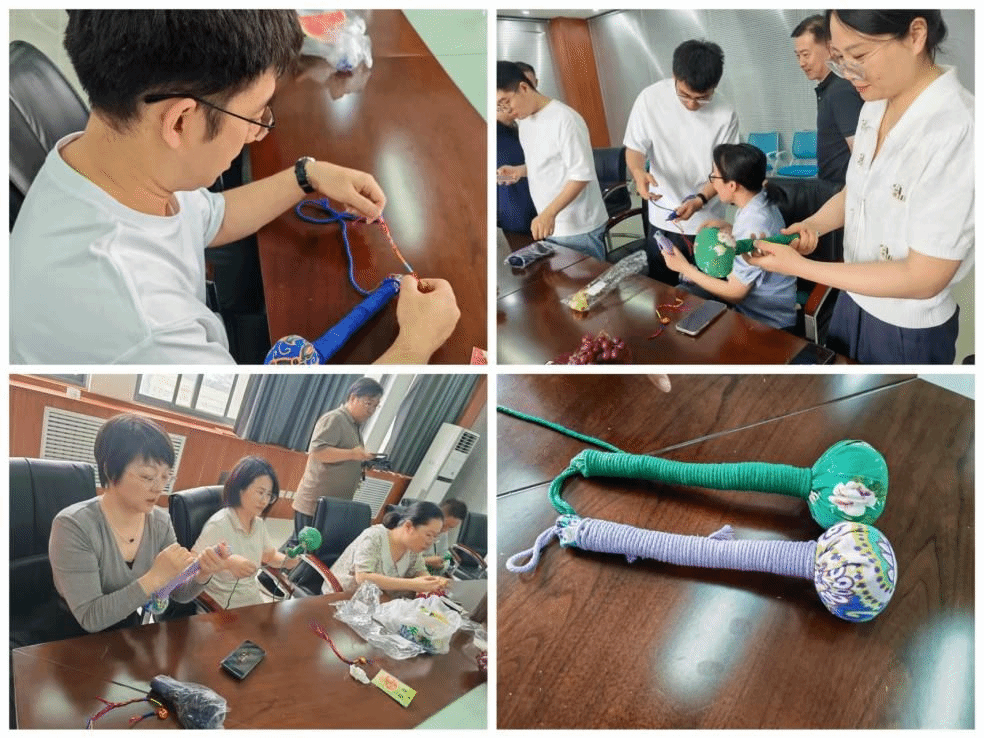 手工制作区内,艾草按摩锤的制作活动格外受欢迎。教师们仔细观看教学视频,随后动手填充艾草、编织绳结,在互帮互助、交流心得的过程中,一个个兼具实用性与纪念意义的手工作品陆续完成。这一环节不仅让大家体验到亲手制作的成就感,也在协作中深化了情感联结,体现出Asstube