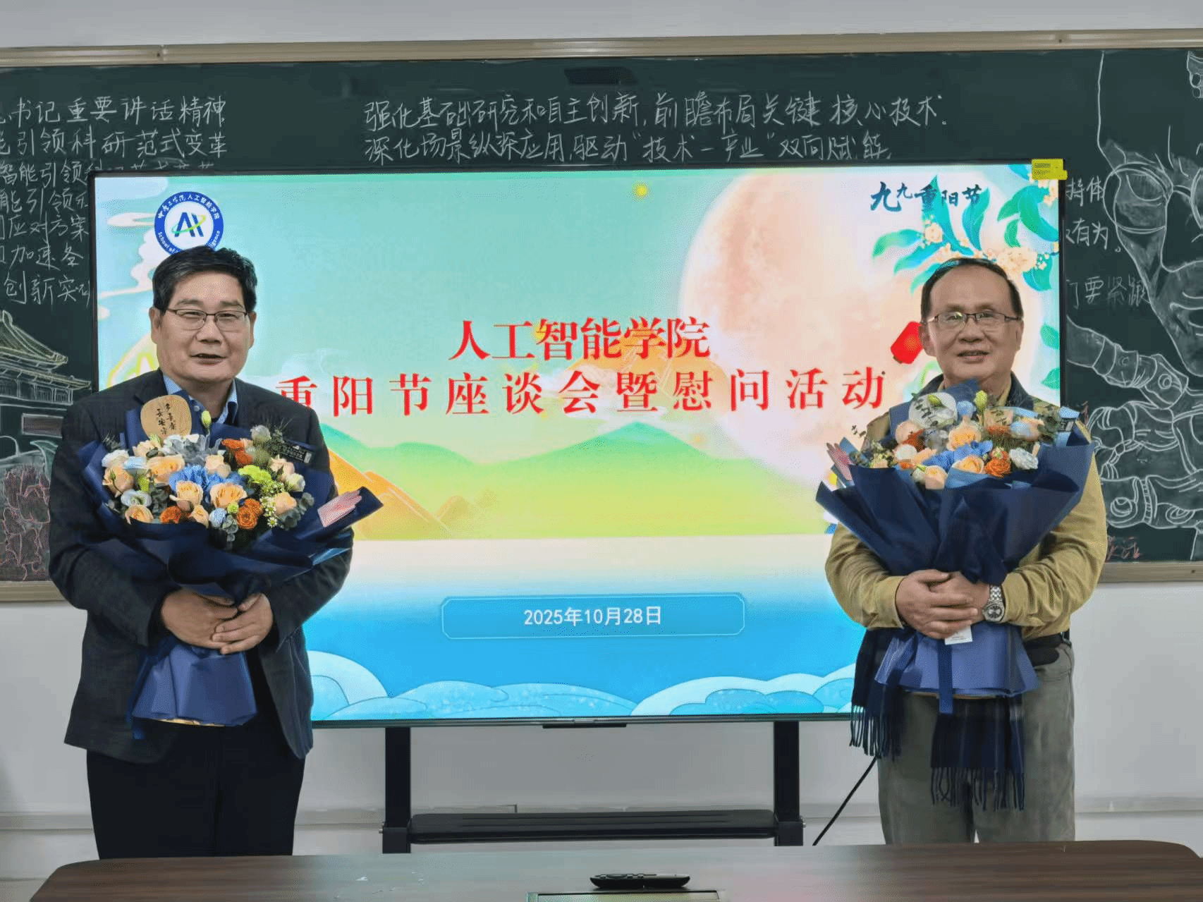 活动最后,学院为陈东义院长和车战斌老师送上了鲜花与纪念品,表达节日的祝福与崇高的敬意。