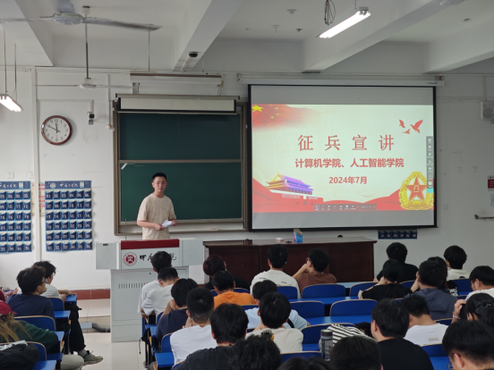 与计算机学院在龙湖校区3号教学楼235教室联合召开了2024年征兵宣讲会。学院党委副书记侯向花、各年级辅导员及各年级学生代表共200余人参加了此次宣讲会。会议由辅导员王腾老师主持。
