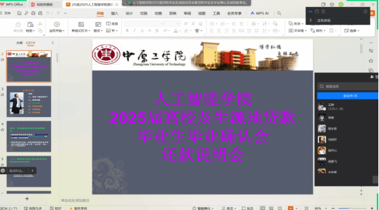 通过企业微信会议组织召开2025届贷款毕业生诚信学生评选动员会暨贷款毕业生毕业确认及诚信教育会。会议由学院主管资助工作辅导员冯丽轩主持,40余名高校及生源地贷款毕业生全程参与。