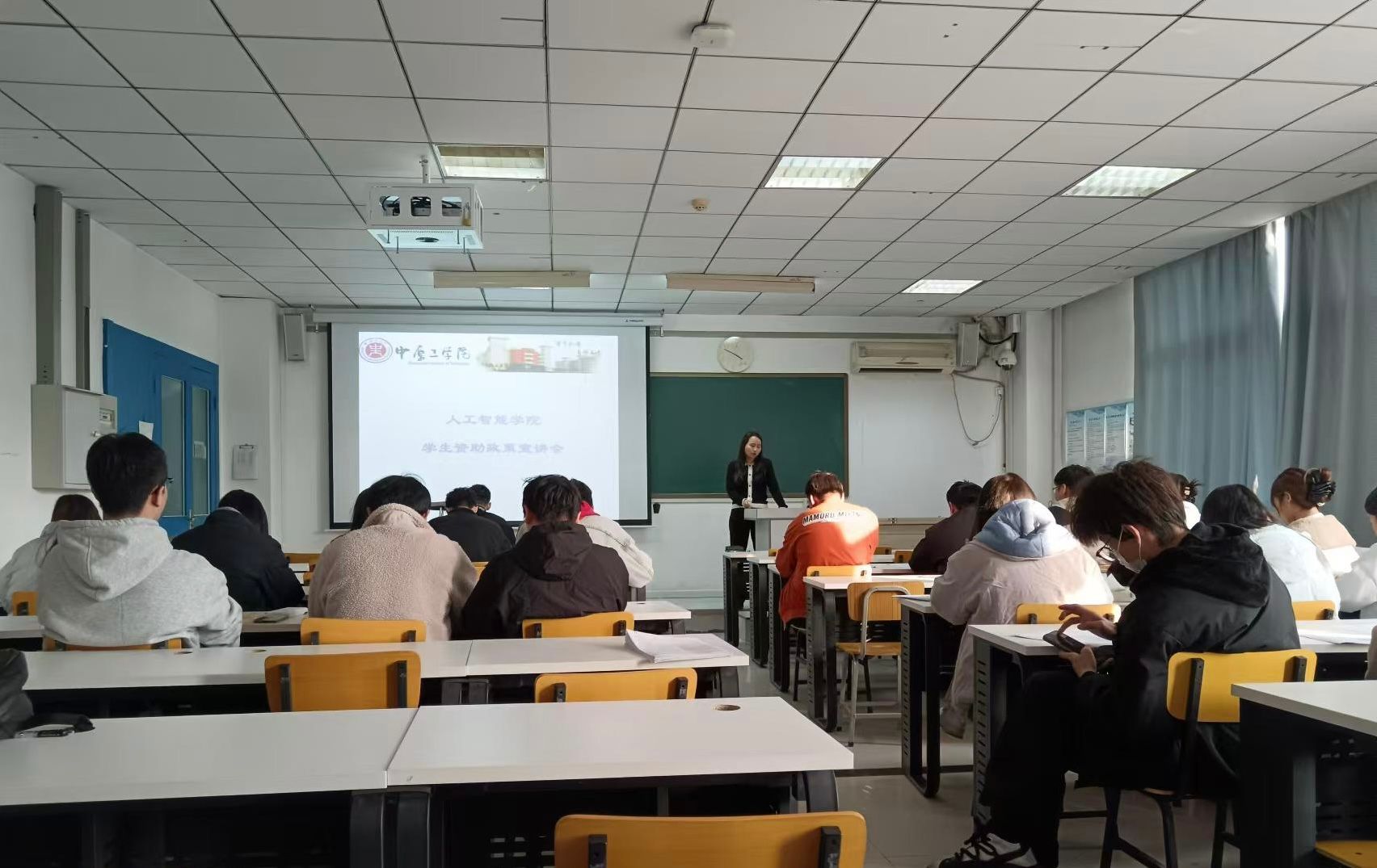 于11月19日下午15:00在中原校区基础实验楼416开展高校助学贷款发放答疑会暨资助政策宣讲会。中原校区数据科学与大数据技术专业全体高校助学贷款学生参加了宣讲会。