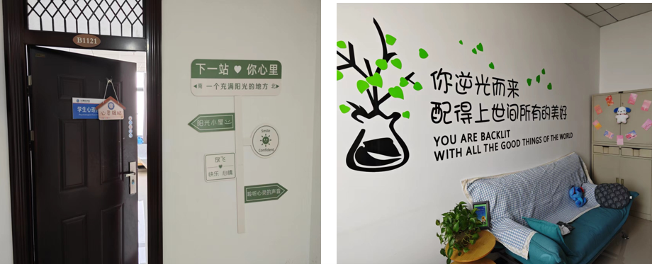 龙湖校区3号组团B座1121室,整体风格温馨舒适,同时也给来访以隐私安全感和舒适放松感,日常活动涵盖心理宣教、心理晤谈、心理辅导、心理书籍借阅等形式和内容,是学生心灵的港湾和成长的摇篮。