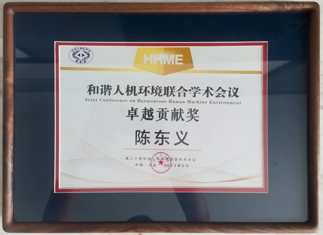 院长陈东义教授因在推动国内可穿戴领域的发展、促进国际交流以及学术创新方面做出的突出贡献获颁“和谐人机环境联合学术会议(HHME)卓越贡献奖”。卓越贡献奖每10年颁发一次,旨在奖励在过去10年中,在推动和谐人机环境相关学术领域研究中作出卓越贡献的人物。