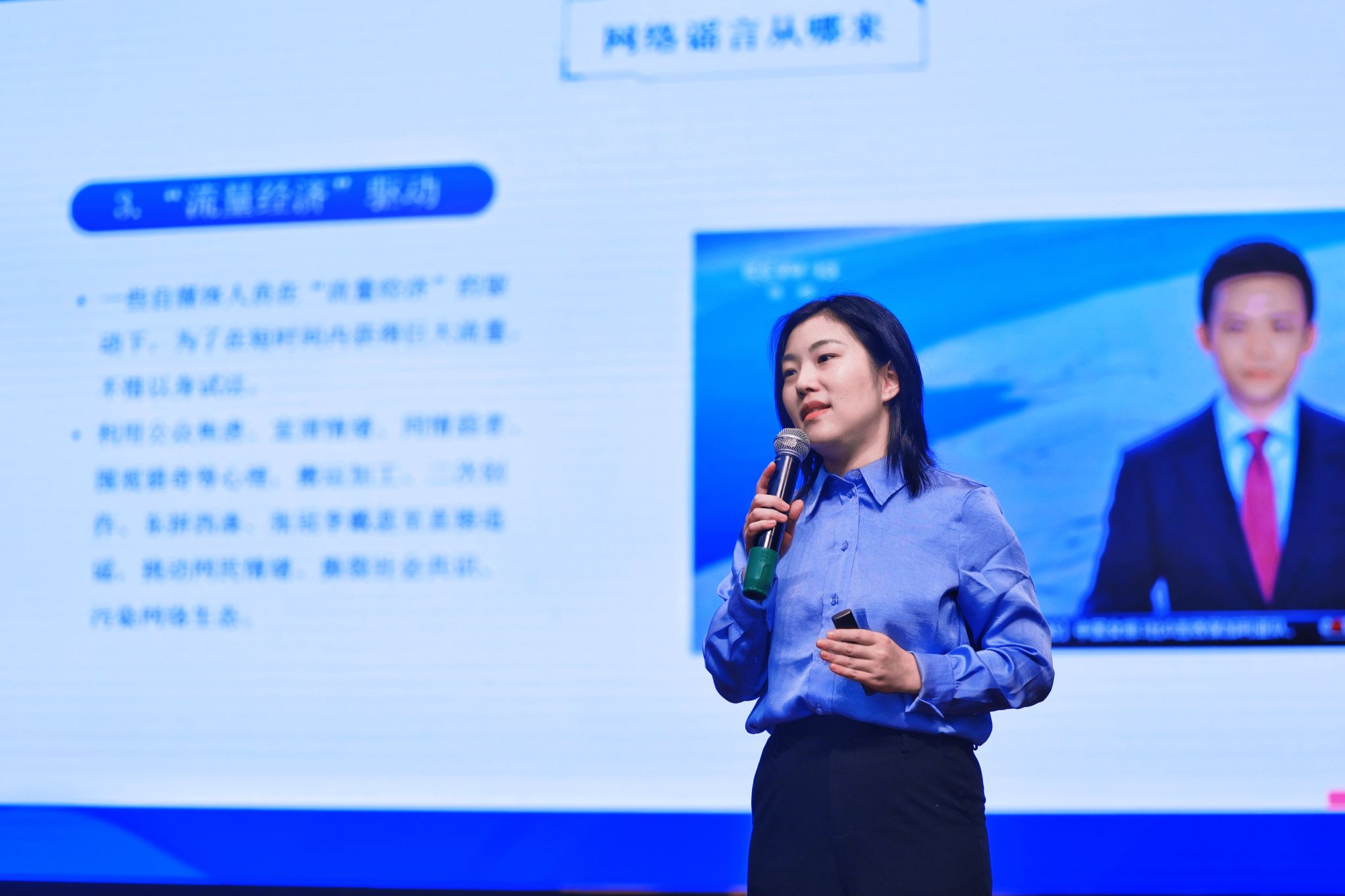 活动的最后,河南省委网信办举报中心宣传教育科干部王文博积极和现场师生互动,用风趣幽默的方式探讨了网络谣言的生成以及传播。“面对网络谣言,我们要勇敢面对。首先,我们要珍惜时光,专注学业积累与自我提升;第二,是日常上网,精选主流优质传播媒介;第三,要视野开阔,避免茧房效应与群体极化。最后要敢于担当,主动净化自己的社群朋友圈。”王文博说。