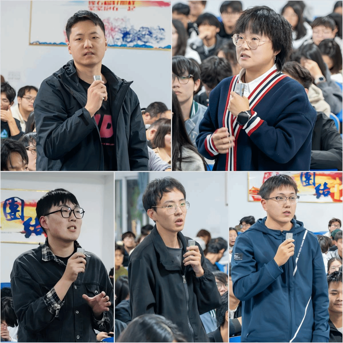 在交流互动环节,与会师生踊跃提问,围绕人工智能前沿技术、应用挑战及未来发展方向与各位专家展开了深入探讨。专家们耐心细致地答疑解惑,现场思想碰撞不断,学术氛围浓厚。